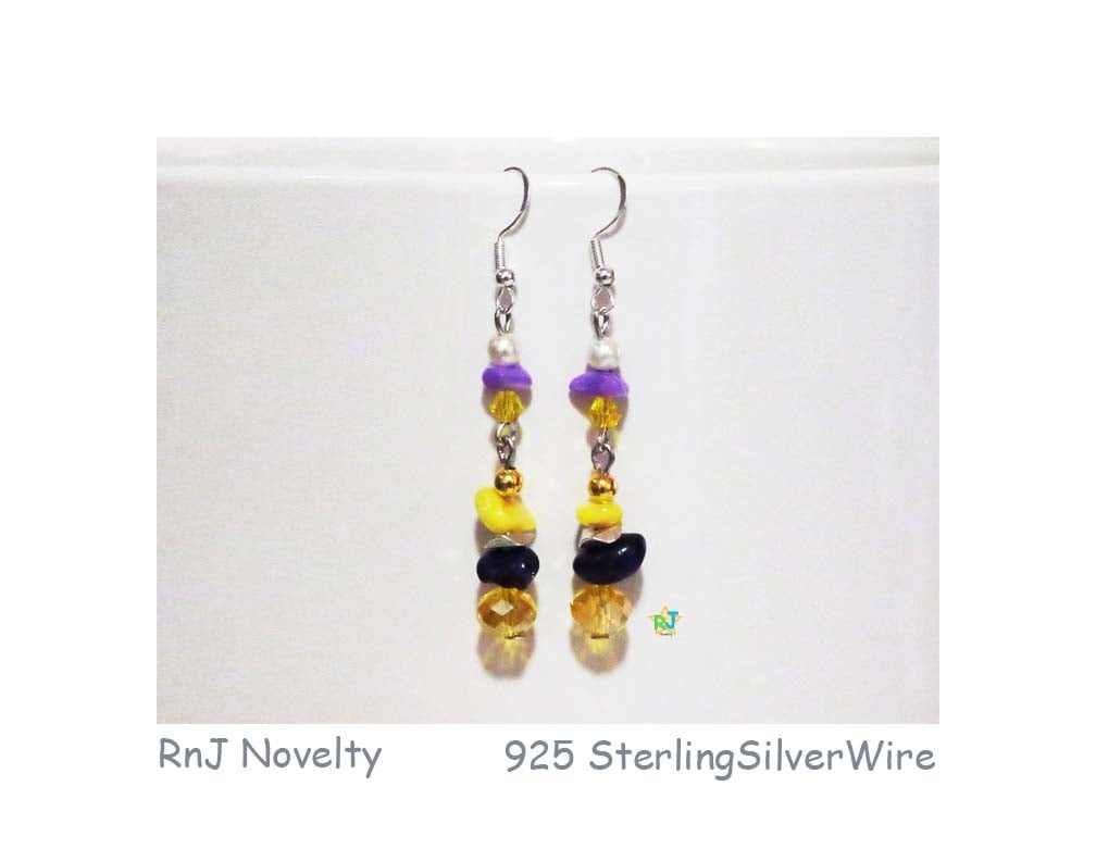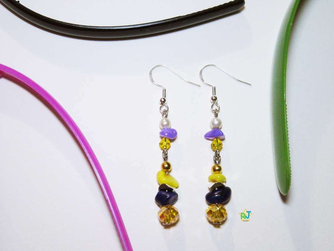 Materials: Yellow & Purple Gemstones, Dk Gold Bead, White Pearl & Yellow Crystal Stones