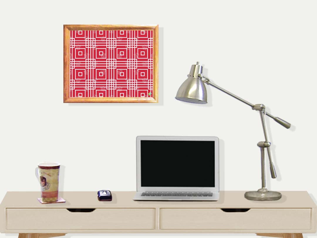 It's Inspiration is Decorative, Squares & Geometric. The Squared Pattern is in Red Color for Aesthetics for Decorative Use.